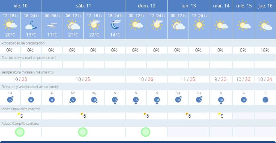 Segรบn informa la AEMET (Agencia Estatal de Meteorologรญa), durante todo el fin de semana podremos disfrutar de temperaturas que oscilarรกn entre los 10ยบC al comienzo de la jornada, hasta los 26ยบC conforme avance el dรญa.