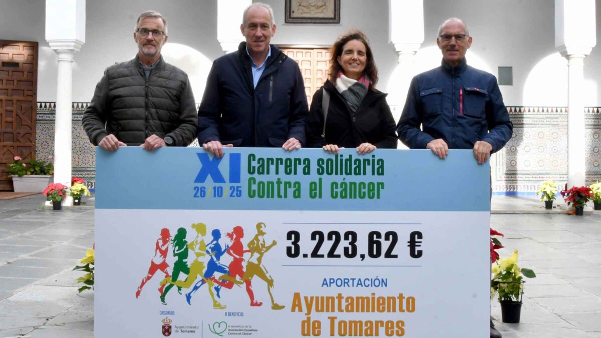 En el acto de entrega también estuvieron presentes el presidente del Club Maratón Tomares, Ricardo Dos Santos, y el delegado especial de Deportes del Ayuntamiento, Antonio Parrilla. Según la información facilitada, la carrera volvió a registrar una elevada participación, consolidándose como una de las principales citas solidarias del calendario deportivo local.